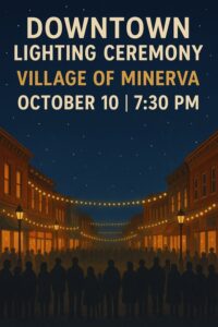 Join us on Friday, October 10th at 7:30 p.m., as we illuminate the historic Brick Street for the very first time. Minerva has always had that Hallmark-like charm, and this special evening will highlight the town’s vibrant community spirit. Come downtown and celebrate during 2nd Friday and be a part of this magical celebration as we bring warmth and light to our beloved Downtown Minerva.
